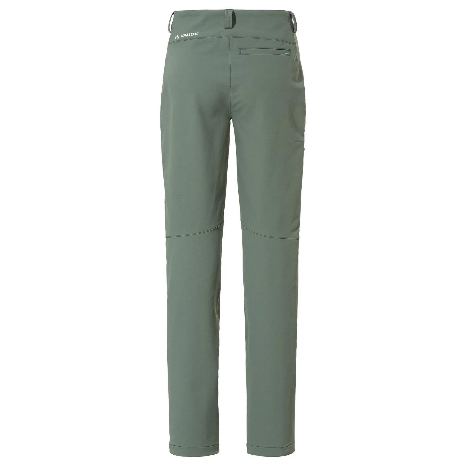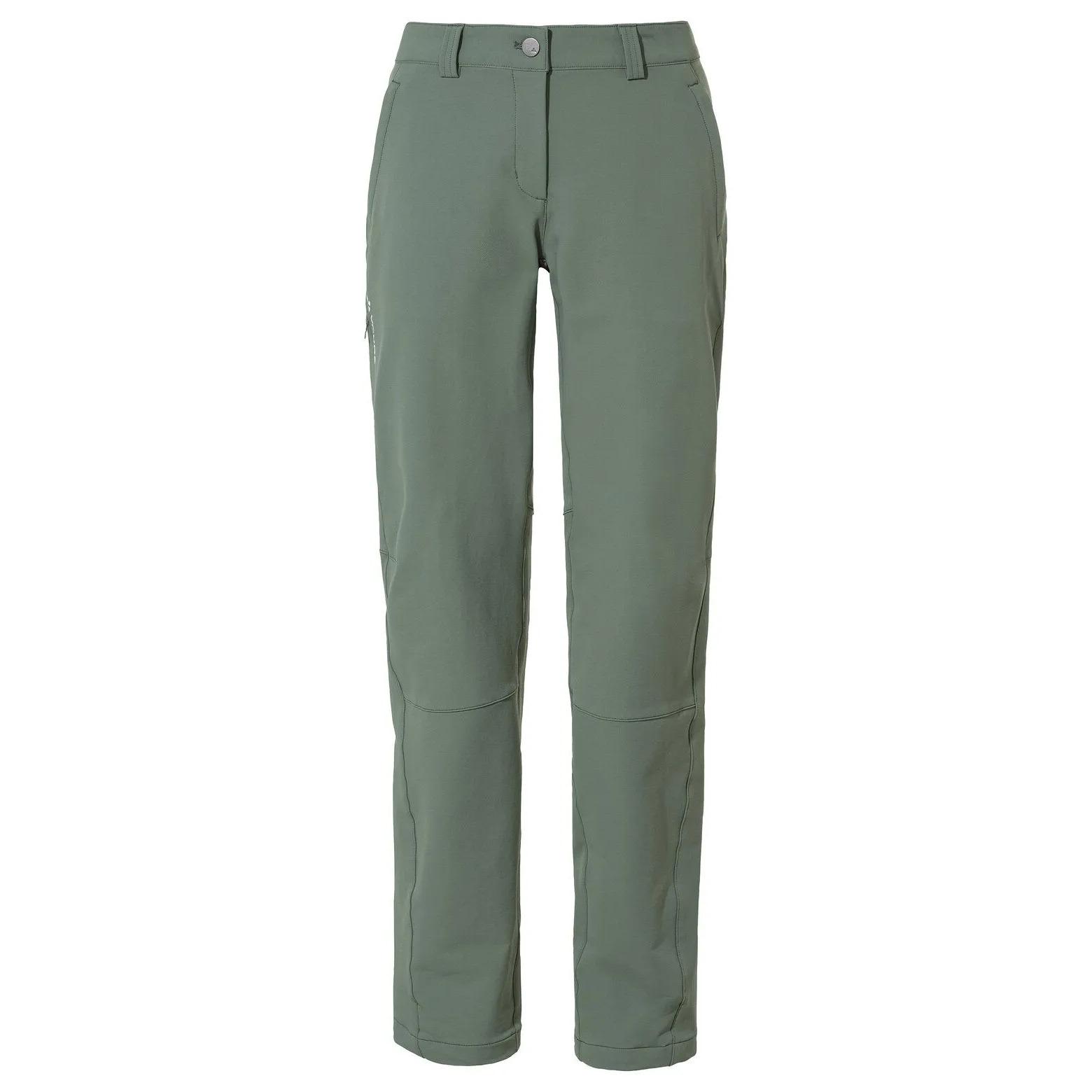 Comfortable, durable and versatile: the new version of the Strathcona Pants II hiking trousers features a more ergonomic and updated fit. The bottoms of the legs can also be adjusted in width using a drawstring. The robust and double-woven fabric is made from recycled material and moves with you thanks to its high elastane content. It's essential for short climbing routes while hiking or during trekking trips. The women's hiking trousers are ultra windproof yet highly breathable, contributing to a pleasant body climate. The softshell-like trousers come with slanted pockets with invisible zips, a side pocket, and a back pocket. These trousers are treated with the eco-friendly and fluorocarbon-free Eco Finish, allowing them to withstand light rain and snowfall without difficulty, and they dry quickly. The Green Shape label from VAUDE ensures an eco-friendly, functional product made from bluesign® certified sustainable materials.