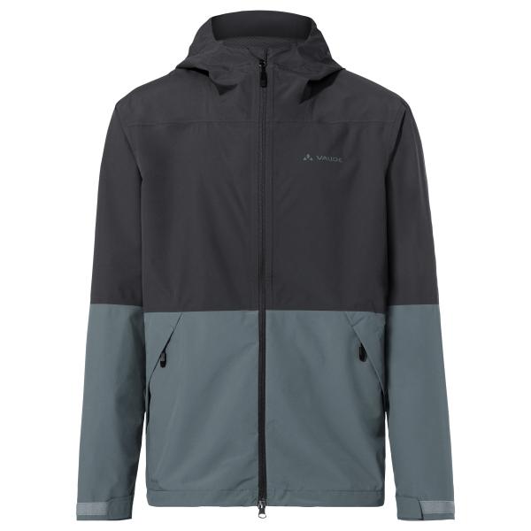 An ultra-functional and modern men's hiking jacket for all weather: Nothing stands in the way of mountain trips in any weather with this 2.5-layer jacket. The Neyland 2.5 L Jacket is breathable, waterproof, and windproof. Ventilation under the armpits promotes pleasant body temperature regulation even during intense physical activities. The modern-looking men's hiking jacket compresses quickly to fit into any backpack. The men's hiking jacket is made from 100% recycled polyester and promises high wearing comfort with its natural and soft touch. The front zip and the two zipped pockets are waterproof and completely fend off the rain. The hood can be easily adjusted with one hand and offers enough freedom of movement for the head. The hem and cuffs are adjustable. This durable and multifunctional men's hiking jacket is also appealing for everyday wear in damp and gloomy weather. The Neyland 2.5-layer jacket is finished with Eco Finish, making it water-repellent, environmentally friendly, and free from fluorocarbons (PFC). The Green Shape label from VAUDE guarantees an ecological product that is functional and made from sustainable materials certified by bluesign®.